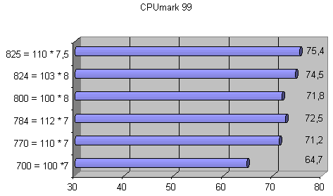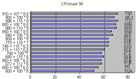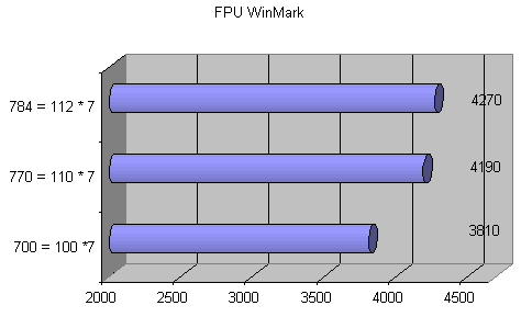 | Частота процессора = Частота шины * множитель | CPUmark 99 | FPU WinMark |