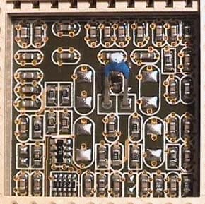 Частотный множитель у процессоров AMD Athlon (Thunderbird) и AMD Duron зафиксирован, однако материнские платы Soltek SL-KV75+ и Abit KT7 обеспечивают возможность его изменения. Но все не так просто. Разрекламированная возможность касается только первых выпусков процессоров. С некоторого момента фирма AMD ограничила данную возможность. Для новых процессоров сигнальные линии, ответственные за изменение частотного множителя оказались перерезанными. Однако, к счастью энтузиастов разгона, данная процедура выполняется фирмой AMD над мостиками L1, выведенными на поверхность процессора. Замкнув перерезанные мостики, можно восстановить утерянные возможности изменения частотного множителя. Это можно сделать с помощью мягкого, острозаточенного карандаша (M2-M4), затирая перерезанные мостики L1 на процессоре. При этом необходимо избегать замыкания соседних мостиков. Результаты процедуры продемонстрированы на следующих фотографиях, на которых представлены фрагменты процессора AMD Duron.