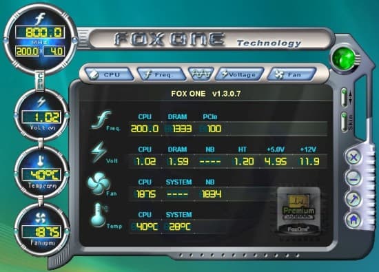 - cистемный мониторинг (ITE IT8721F), в BIOS предусмотрено автоматическое управление частотой вращения, причем как для процессорного, так и двух системных, но только при использовании вентиляторов с 4-контактными разъемами. Пользователь может установить температурные пороги для полной остановки и соответствующий минимальной частоте вращения , что весьма актуально в контексте сборки малошумного компьютера.