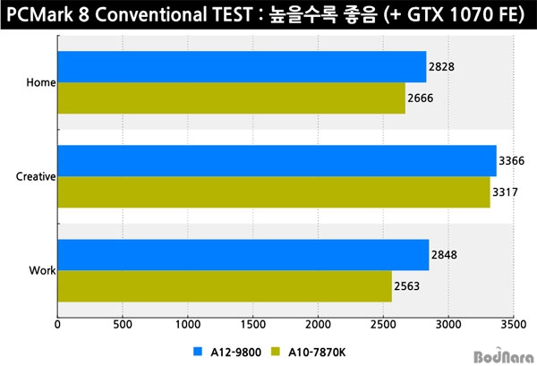 Итак, новинка сравнивалась с APU A10-7870K, который содержит четыре ядра с частотой 3,9/4,1 ГГц и GPU с теми же 512 потоковыми процессорами, но с частотой 866 МГц. И потребляет этот гибридный процессор 95 Вт, так что разница впечатляет. С результатами тестов можно ознакомиться благодаря диаграммам ниже.
