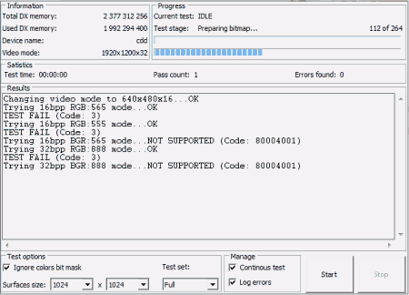 Утилита Video Memory Stress Test проверяет видеопамять побитно, а не попиксельно, аналогично тестам для проверки оперативной памяти, и больше не требует смены видеорежима в процессе тестирования.