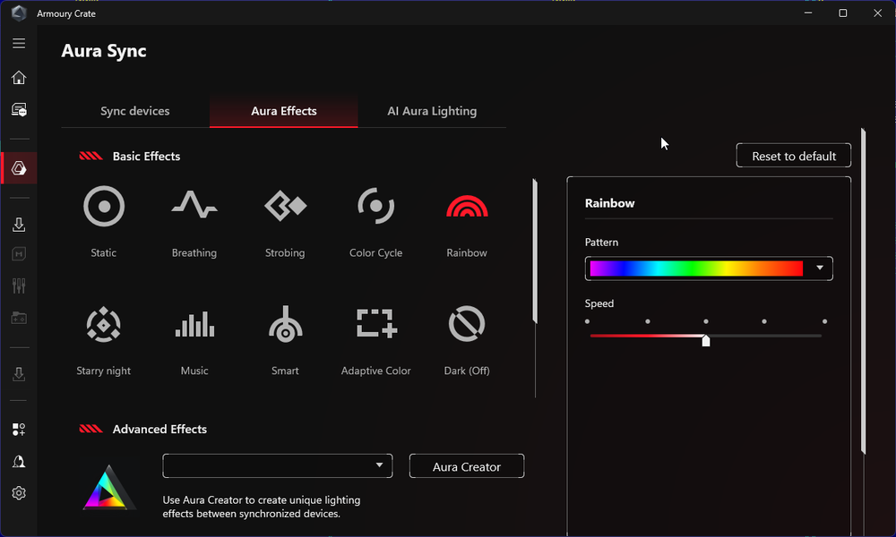 Также можно включить фирменный режим синхронизации подсветки с поддерживаемыми устройствами под названием Aura Sync. При этом для синхронизации и настройки подсветки нужно использовать фирменное приложение Armoury Crate.