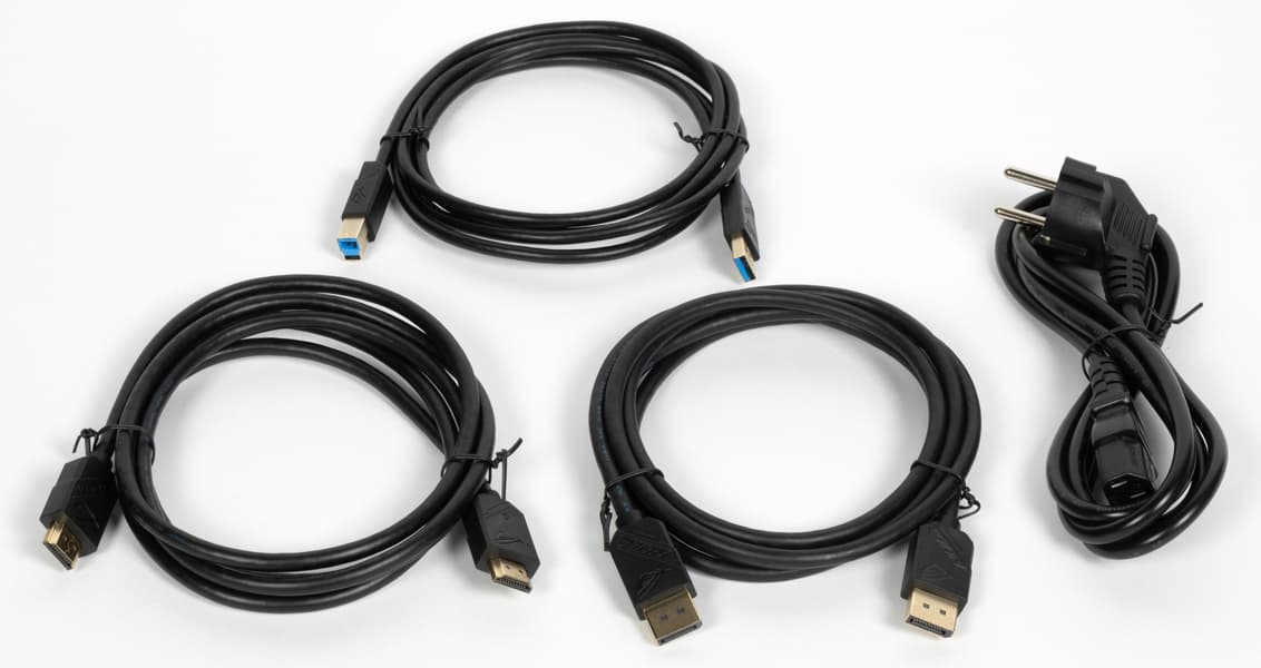 К монитору прилагается неплохой комплект кабелей черного цвета.