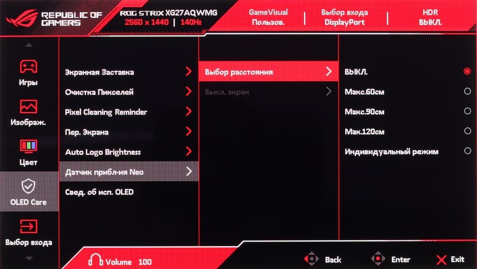 Многие потенциальные покупатели мониторов и телевизоров матрицами OLED опасаются эффекта выгорания — неустранимого остаточного изображения. Однако по факту в случае разнообразного контента без статичных участков выгорания OLED не происходит. Этому также способствуют различные функции, предотвращающие эффект выгорания. В данном мониторе их несколько, в том числе и отключение экрана в случае длительного отсутствия пользователя перед экраном (применяется инфракрасный датчик присутствия).