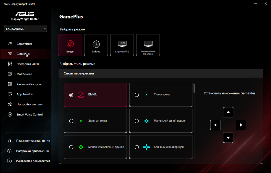 Из дополнительных возможностей в наборе GamePlus присутствуют пять «геймерских» функции: вывод на экране счетчика частоты кадров (с графиком или без), прицела выбранной формы и цвета (есть вариант с автоматическим выбором цвета, чтобы прицел всегда был виден), небольшой области с увеличением для лучшего прицеливания, таймера с обратным отсчетом от фиксированных значений, секундомера и меток для выравнивания установленных встык мониторов. Выводиться может что-то одно.
