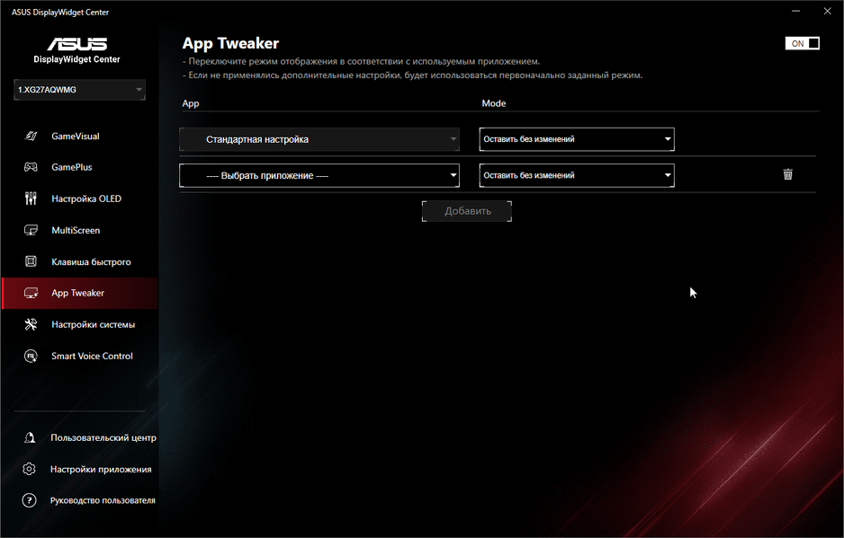 Присутствует набор предустановленных, но редактируемых значений настроек в виде нескольких профилей в том числе игровых.