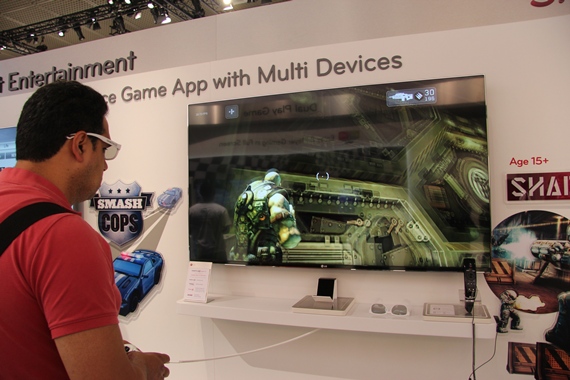 Также на своем стенде LG дали возможность почувствовать, насколько захватывающим выглядит игровой процесс на телевизорах с минимальной шириной рамки. На новом LED-телевизоре LG 55 LM9600 с поддержкой Smart TV и 3D ширина рамки исчисляется миллиметрами.