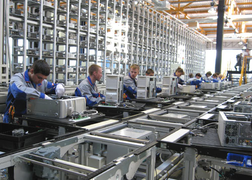 Производство имеет зону подготовки, где осуществляется входная проверка комплектующих, зону сборки, зону предварительного тестирования (настройка BIOS, проверка работы портов) и зону тестирования, где при помощи промышленных тестов проверяется работа всех компонентов компьютера.