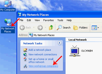 С других компьютеров получить доступ к расшаренным директориям можно, зайдя в сетевое окружение (My Network Places), находящееся в меню Пуск или на рабочем столе, выбрав View Workgroup Computers,