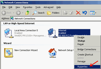 Главное, что в окне Network Connections видны два сетевых интерфейса. В данном случае (см.скришнот) левый интерфейс (Local Area Connection 5) отвечает за доступ в локальную сеть, а правый (Internet) — за доступ в глобальную сеть Интернет. Разумеется, названия интерфейсов будут отличаться в каждом конкретном случае.