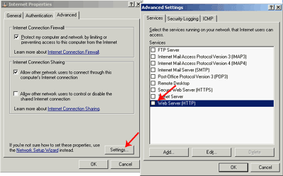 В том же меню, где активировали NAT, жмем кнопку Settings и выбираем в появившемся окне Web Server (HTTP).