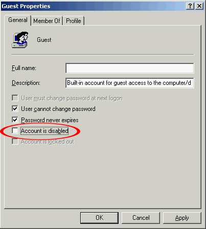 Если вышеописанное условие не выполняется, могут возникнуть проблемы с доступом к расшаренным директориям (выпадающие окошки с надписями вида отказано в доступе и тд). Этих проблем можно избежать, активировав гостевой аккаунт. Правда в этом случае ЛЮБОЙ пользователь внутри локальной сети сможет увидеть ваши расшаренные директории (а в случае сетевого принтера — печатать на нем) и, если там было разрешено изменение файлов сетевыми пользователями, то любой сможет их изменять, в том числе и удалять.