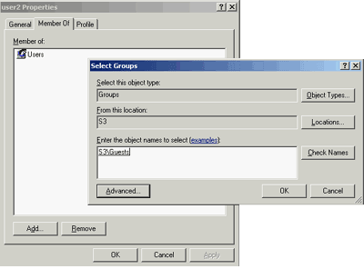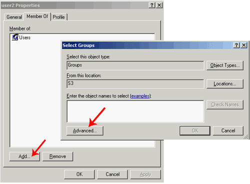 Member of —> Add, в появившемся окне жмем на Advanced (дополнительно)