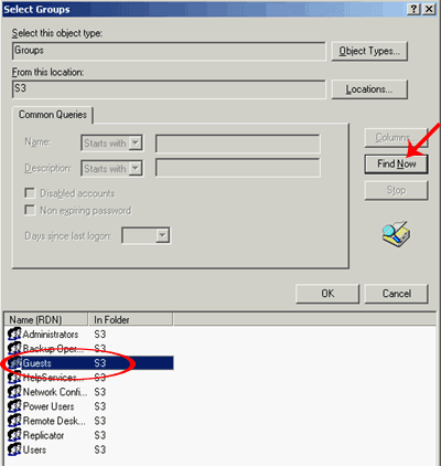 Жмем Find Now (найти). И в появившемся списке выбираем нужную группу (Guest, гости).