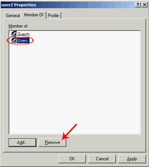 Пользователь введен в группу Guest. Осталось вывести его из группы Users: выделяем ее и щелкаем на кнопке Remove (удалить).