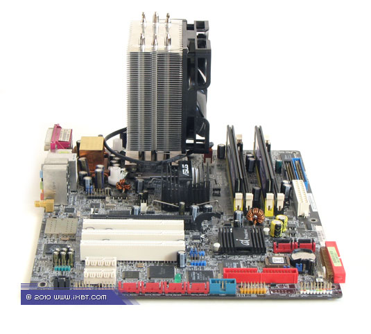 Конструктивные особенности (радиатор). «Рабочее тело» кулеров образовано композицией медно-алюминиевого теплосъемника 55х55х9 мм, трех тепловых трубок диаметра 6 мм и секции алюминиевого оребрения (49 пластин, общая площадь поверхности теплообмена порядка 4500 см2).