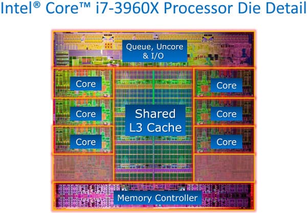 Ну и, естественно, при использовании двух старших моделей процессоров эти плюсы никуда не денутся, зато к ним добавятся еще и свободные множители, и большее количество ядер. Подробно о характеристиках Core i7-3900 мы поговорим чуть позже, пока же заметим, что оба шестиядерные. Точно так же, как Core i7-900 на Gulftown, т. е. увеличения количества ядер в настольных процессорах Intel не произошло. Просто 10 месяцев этого года компания предлагала либо новую архитектуру, но в количестве четырех ядер — либо шесть ядер, но старых. Что сильно затрудняло выбор, поскольку в малопоточных приложениях (которых среди настольного софта подавляющее большинство) побеждала архитектура Sandy Bridge, но вот в некоторых задачах при помощи грубой силы «старички» выходили вперед. Теперь же разрываться между умными и красивыми не приходится — новые Core i7-3900 одновременно и Sandy Bridge, и шестиядерные. Но не более того — просто нормальное эволюционное усовершенствование.