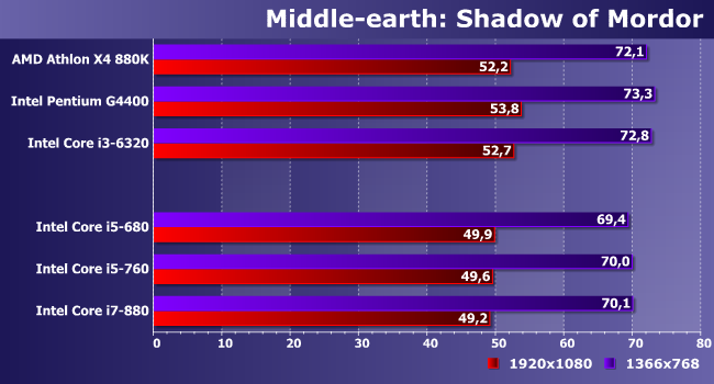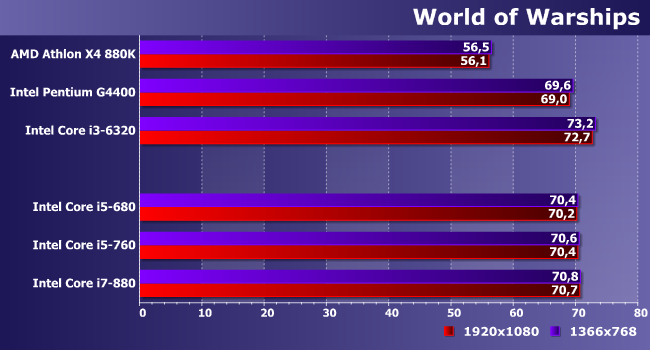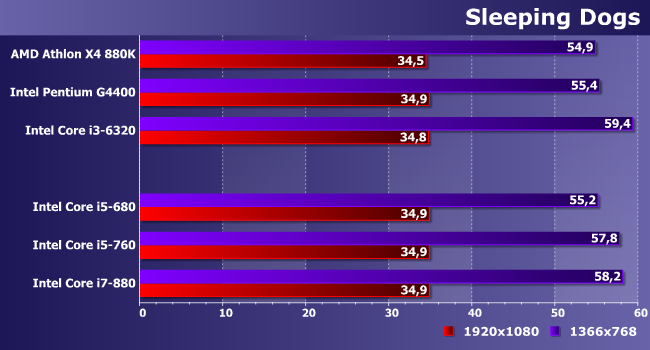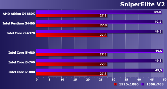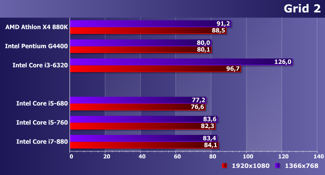 Практически полное совпадение результатов в обоих разрешениях четко показывает, что производительность «наглухо упирается» в процессоры — что и предполагалось. Впрочем, особых проблем на практике это не вызывает: играть можно и с комфортом.