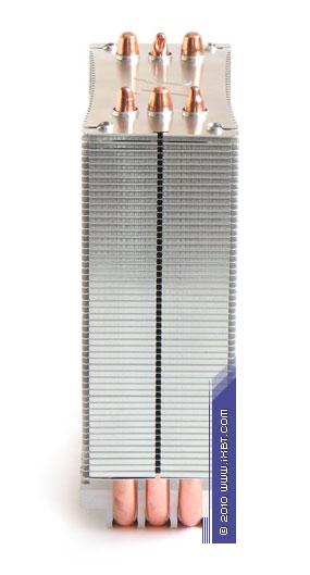 Конструктивные особенности (радиатор). «Рабочее тело» кулера базируется на технологии «прямого контакта» и имеет в своем составе три медных тепловых трубки диаметра 8 мм, алюминиевый механический держатель 53х55х14 мм и секцию алюминиевого оребрения (54 пластины, общая площадь поверхности теплообмена порядка 5500 см2).