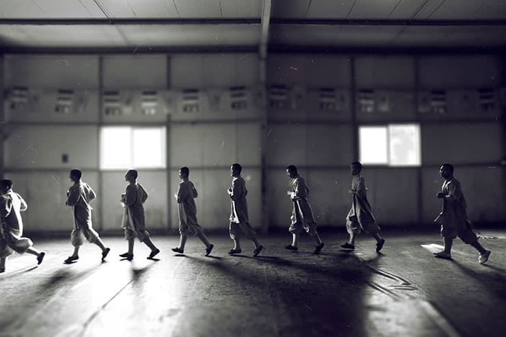 Но, конечно, в первую очередь меня интересовало у-шу. Я очень хотел попасть на тренировки — их обычные, рядовые тренировки. Бывают и ночные, и утренние, и все они — закрытые. Я очень хотел это сфотографировать, потому что таких фотографий в мире очень мало: немногим удается туда попасть и поснимать.