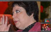 Если учесть, что съемка производилась в обычном помещении, довольно светлом, напротив окна, но без дополнительной подсветки, картинка получилась очень неплохой, почти замечательной. За работой автофокуса интересно наблюдать, как он время от времени «теряется», ему мешает стекло витрины и отражения внешних предметов. Но «потерявшемуся» автофокусу можно помочь — если полунажать кнопку спуска, АФ переходит в непрерывный режим и довольно быстро разбирается в картинке, отсекает ложные «цели». Правда, от перестройки фокуса фонограмма чуть портится, АФ объектива поскрипывает. Но это камень не в сторону камеры, а в сторону кит-объектива (мы уже отмечали этот его недостаток).