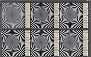 - При открытой диафрагме разрешение падает ниже 0,65 линии на пиксель. Изображение очевидно замыливается. Особенно сильно этот эффект проявляется на краях — на коротком и на длинном фокусном расстоянии
