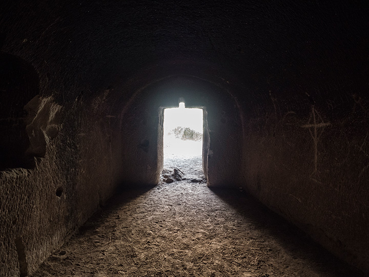 На воздухе и в помещении (даже в пещере) баланс белого, как правило, работает адекватно, хотя условия часто далеки от идеальных. Синий цвет остается синим (первое фото) даже при желтоватом свете вечернего солнца. А серый потолок пещерной церкви (второе фото) не проваливается в желтизну или синеву.