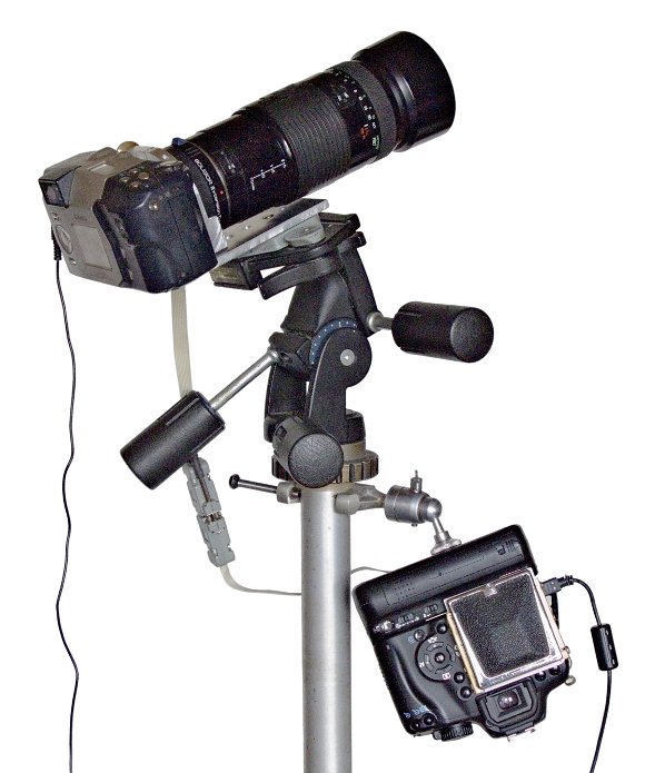 Для нижеприведенной съемки Луны я использовал камеру Casio с объективом SOLIGOR 210 мм и вышеописанным телеконвертером. В качестве контроллера, сопрягающего объектив с компьютером, использовалась камера Canon EOS 1000D. Полностью управление этой конструкцией с помощью компьютера задействует практически все возможные средства коммуникации, так как камера Casio QV3000 управляется через последовательный порт, снятое изображение передается через USB, а текущее изображение поступает на экран компьютера по аналоговому видиоканалу и оцифровывается устройством видеозахвата. Статья «О внебрачных связях камеры и компьютера» сперва была опубликована в разделе Периферия и тогда это было некоторой натяжкой, однако оказалось, что камера действительно может быть примером некой суперпериферии, когда для получения качественного снимка приходится задействовать все ресурсы :-)