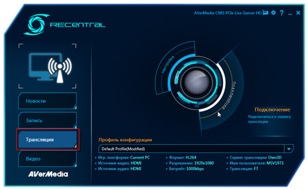 Возможно, здесь следовало бы подробно рассказать о волшебном процессе захвата или трансляции… Однако придется обойтись без лирики. Потому, что процесс этот ничем не примечателен — карта просто работает. Но работает красиво. К примеру, так происходит запуск приложения RECentral: