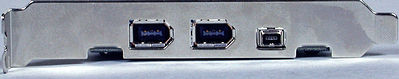 Плата выполнена в виде PCI-карты на наборе микросхем Texas Instruments (TSB41LV03A и TSB12LV26)