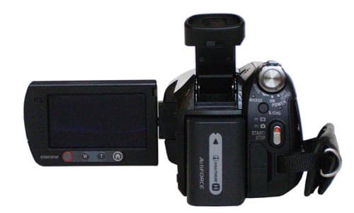 Под ЖК-экраном спрятан динамик. Несмотря на наличие выхода для наушников, динамик этот довольно громкий. Здесь же находится кнопка с немудреным названием EASY, вся ее роль сводится к активизации одноименного режима, работая в котором, пользователь может не задумываться о ручном балансе белого, фокусировке и прочих излишествах: камера сама определяет нужные параметры съемки. Тем более, все ручные настройки оказываются заблокированными до тех пор, пока кнопку EASY не нажмешь повторно. Еще чуть ниже слева направо расположены кнопки DISP/BATT INFO (включает/отключает отображение на экране служебной информации), следующая за ней кнопка запускает встроенный браузер. Последняя кнопка переводит камеру в режим проигрывания записанного ранее видео. Наконец, здесь же, под ЖК-экраном, находится слот для карт памяти Memory Stick Duo или Memory Stick Pro Duo (поддерживаются карты объемом аж до 8 ГБ — это не опечатка!).