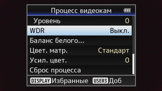 Ну и какая же это была бы профессиональная видеокамера без WDR, технологии расширения динамического диапазона. Данная функция может быть активирована в любом режиме записи, включая 4K. Настройки WDR состоят из четырех пунктов: расширение выключено, слабое, естественное, сильное.