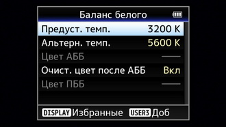 Большинство видеокамер или фотоаппаратов сходят в таких условиях с ума, а ручная «отбивка» баланса белого помогает далеко не всегда. Тут без точных ручных настроек цветовой температуры никак не обойтись. Рассматриваемая камера имеет настройки, которые позволяют отрегулировать баланс белого с интервалом в 100 кельвинов. А для оперативной смены баланса белого во время видеосъемки присутствует функция быстрого выбора двух предустановок, значение которых также задается вручную.