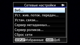 Нужно уточнить: пункт Сеть доступен только если камера переведена в режим записи Full HD или ниже. В 4K сетевые функции неактивны.