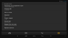 | Стартовое меню приложения | Настройки воспроизведения и синхронизации | Настройки камеры |