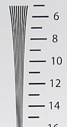 Кстати, повышенная резкость картинки является серьезным сдерживающим фактором для математических программ, которые применяются при определении разрешающей способности невизуальным методом. Во многом по вине «неподходящих» для программы стоп-кадров, результаты таких измерений зависят от того, как их трактовать, какую величину резкости считать идеальной, стандартной. Ну и, конечно, зависят от того, кто их, эти результаты, трактует. Считаем уместным ограничиться привычными и наглядными линиями в тестовой таблице (их число, как мы выяснили, не изменяется с увеличением или уменьшением резкости), а нижеследующие результаты невизуальных измерений просто оставим здесь. Вдруг когда-нибудь найдется способ правильно их трактовать, без навешивания на камеры ярлыков «Непригодна для измерений».