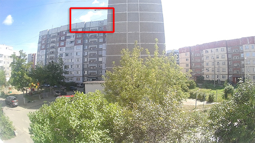 Тестируя обычные камеры с нормальным углом обзора, мы часто измеряем угол наклона вертикалей, делая это с помощью установки с вращающимся цилиндром. Но с таким объективом, который установлен в рассматриваемой камере, это делать бессмысленно — угол обзора камеры слишком широк. По данной же причине безрезультатным оказывается и наблюдение за наклоном вертикалей в «живом» видео — любой наклон «съедается» слишком широким углом обзора, поскольку объекты словно перемещаются по поверхности сферы. Поэтому обойдёмся реальными примерами съемки, не синтетическими. Попытаемся отыскать пресловутое «желе», второй признак роллинг-шаттера.