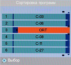 В неблагоприятных условиях приема на комнатную антенну телевизор нашел 14 ТВ-станций (Москва, Останкинская башня далеко и окно на нее не смотрит). Четыре станции — отличная картинка, пять — среднего качества, пять — ниже среднего. Список каналов можно отсортировать вручную. В свойствах канала редактируются: система звука, система цвета, флаг пропуска, включение автоподстройки частоты, частота (поиск сигнала вверх-вниз от текущего) и текстовая метка (заглавные латинские буквы, цифры и пробел).