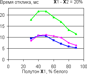 | Времена отклика при переходе между полутонами с разницей 20%. | |