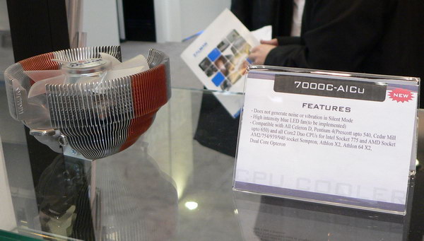 На стенде Zalman мы обнаружили новинки не в высоком классе, а среди относительно недорогих моделей, не имеющих тепловых трубок. Все новинки являются удешевленными версиями хорошо знакомых пользователям кулеров. Причем бросающихся в глаза признаков упрощения не видно, очевидно, просто сэкономили на материале, а насколько это скажется на эффективности, покажут тесты.