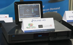 Да, да. Та самая Дюна, которой посвящена одна из самых больших веток в нашем форуме домашних кинотеатров. Судя по словам представителя компании Алексея Седова, они знают об этой ветке. Видимо почитывают. Оказывается, компания участвует в CES уже третий раз. Ведутся переговоры с крупнейшим провайдером фильмов для просмотра фильмов с доступом через интернет Netflix. Все технические вопросы утрясены, осталась финансовая составляющая — кто кому и за что будет платить. В отличие от других производителей, Dune очень активно участвует в распространении русскоязычного интернет-телевидения на американском континенте. Впрочем, это не мешает интересоваться продуктами компании не только русскоязычному населению.