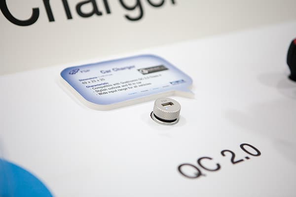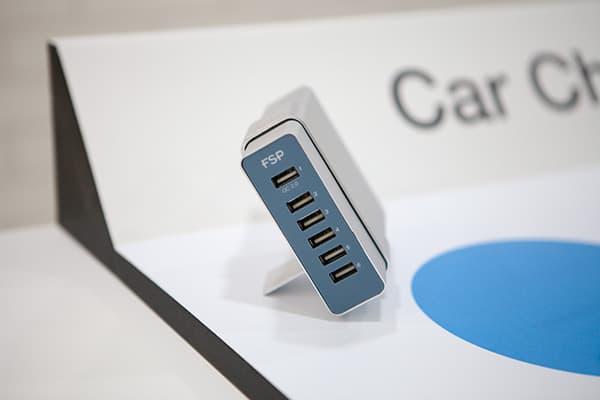 На стенде FSP демонстрировались также и автомобильные USB-адаптеры, которые подключаются в разъем так называемого прикуривателя. Причем в ассортименте компании имеются как обычные USB-адаптеры, так и адаптеры с поддержкой стандарта Qualcomm QC 2.0 (Quick Charge), что позволяет сократить время зарядки смартфона или планшета — при условии, конечно, поддержки данного стандарта самим смартфоном (планшетом).