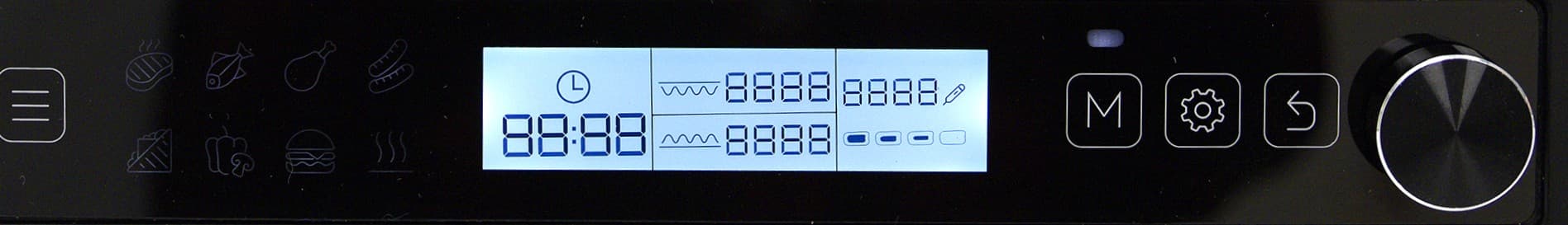 Через несколько секунд после выбора программы и/или корректировки настроек прибор начнет нагрев, а индикаторы времени и температуры будут мигать. Когда гриль дойдет до нужной температуры раздастся звуковой сигнал. Короткий негромкий писк будет звучать с паузами до тех пор, пока пользователь не разместит продукты на панели и не нажмет на энкодер. С этого момента начнется обратный отсчет установленного времени.