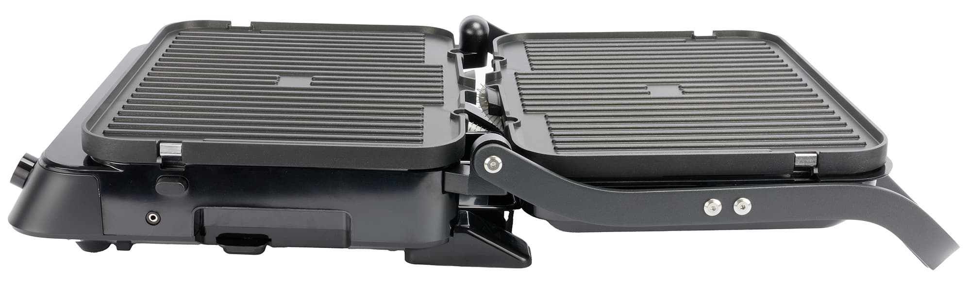 Гриль с широким диапазоном нагрева панелей от 80 до 230 градусов обладает достаточной мощностью для быстрого и качественного обжаривания продуктов. Равномерность распределения температуры по поверхности панелей — отличная, что исключает пригорание или присутствие сырых участков в готовых блюдах.