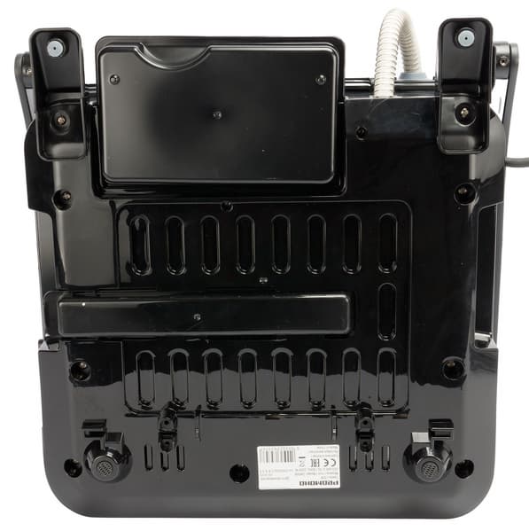 Там же мы видим вентиляционные прорези, кабель, соединяющий панели и пластиковые ножки-выступы, которые ограничивают возможность поставить прибор вплотную к стене.
