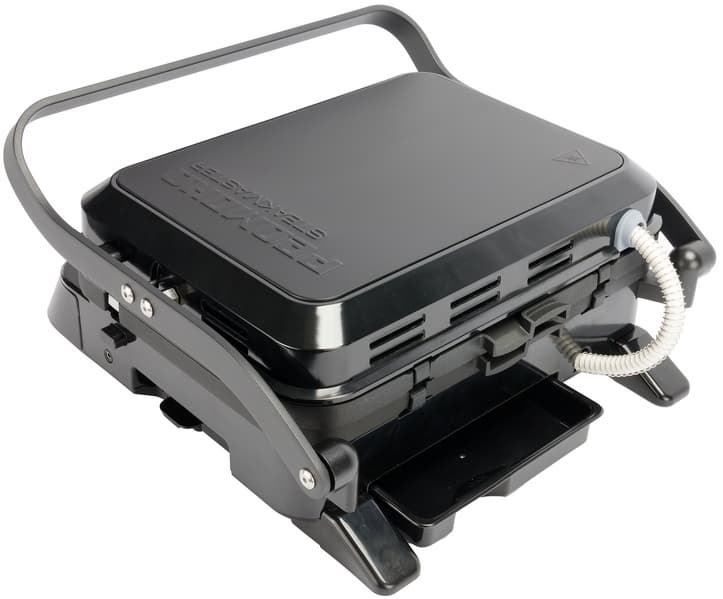 Когда гриль разложен в виде жаровни, крышка опирается на ручку, таким образом, обе жарочные панели находятся на одной высоте и слегка наклонены внутрь, в сторону контейнера для сбора жидкости и жира.