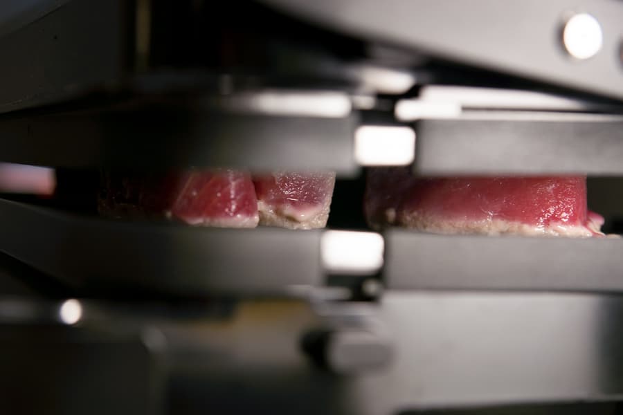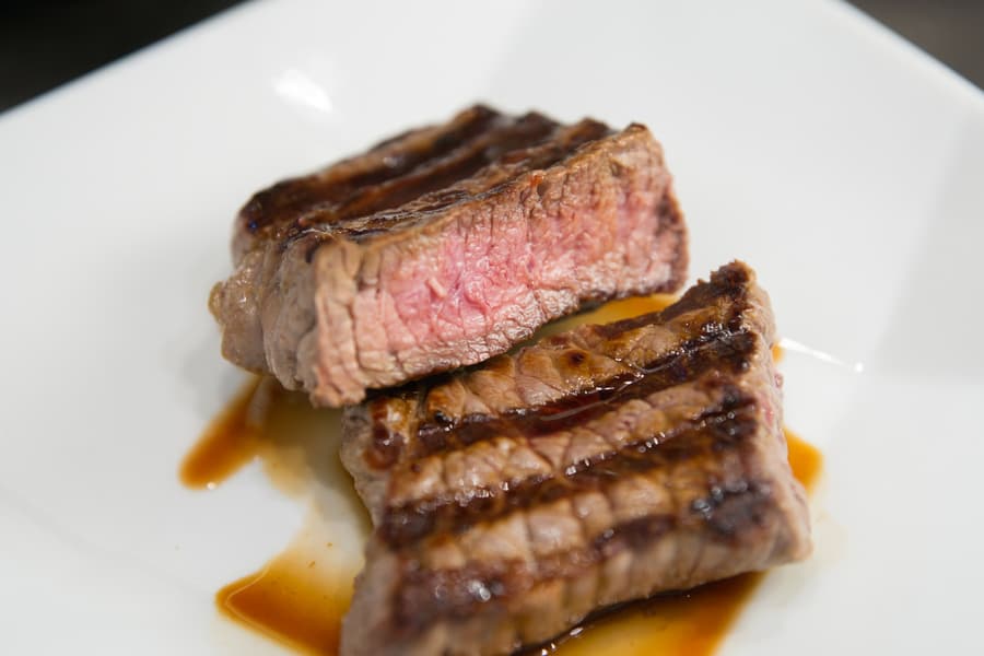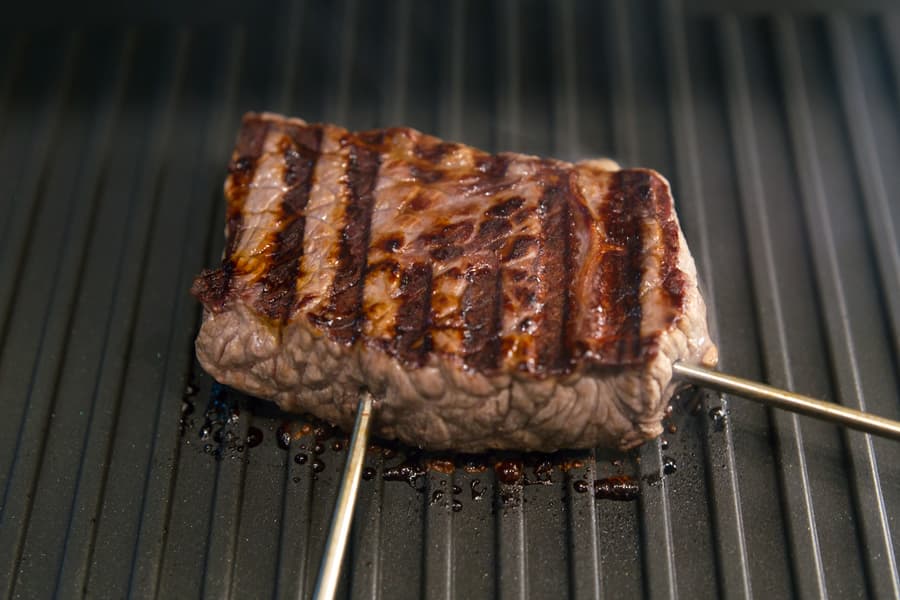 Чтобы стейки внутри остались розовыми, время приготовления ограничили тремя минутами.