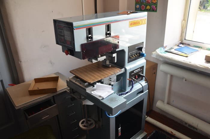 Многие «производители» заказывают в Китае готовые регистраторы, наклеивают на них шильдики со своей торговой маркой и продают как российский продукт. Мы знаем, что в AdvoCam не ограничиваются этими самыми шильдиками, но, тем не менее, и такой станок есть в наличии. Это американский Winon WN 123A, который как раз и служит для нанесения торговой марки методом тампонной печати. Цена аппарата – около $7 500. Всего для производства деталей на заводе используется станки на общую сумму в десятки миллионов рублей (свыше $1 000 000).