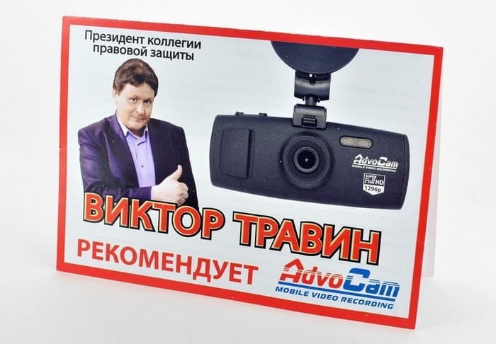 На каждой коробке с регистратором AdvoCam есть наклейка с портретом Виктора Травина – известного телеведущего и президента коллегии правовой защиты автомобилистов. В комплекте с каждым устройством находится краткая инструкция от Травина, в которой говорится о правильном поведении после ДТП. В том числе и о том, как необходимо использовать видео с регистратора в случае аварии. Полная версия инструкции доступна на сайте AdvoCam.