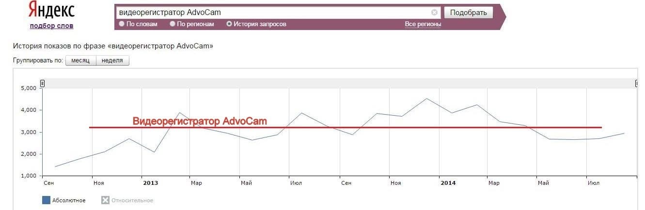 Но по данным того же «Яндекса» количество запросов по регистраторам AdvoCam за последний год не падает. Хотя и не растет. То есть, марка стабильно «держит удар» на падающем рынке.